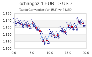 Ces taux de conversion sont fournis par la BCE (Banque Centrale Européenne) renouvelés une fois par jour, ils sont valables que pour référence pendant un jour. Voir aussi l'historique d'évolution, tau de conversion de cette monnaie, ou le graphe d'évolution EUR => USD. La table croisée des devices modiales donne une vue globale, et la liste des monnaies nationales du monde est aussi à consulter.